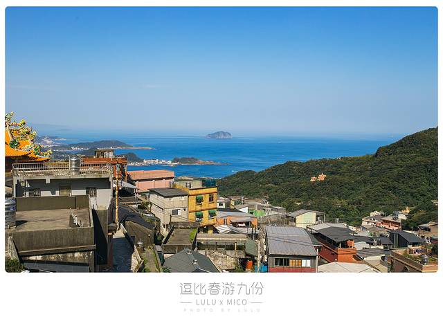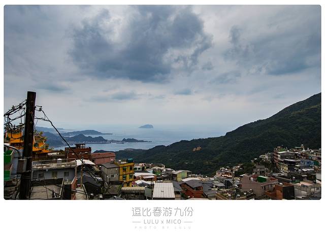 我们到达住处,能看到的九份美丽的山海景~虽然是阴天,但看山峦起伏,延伸到平静的大海里,仍觉景色漂亮~