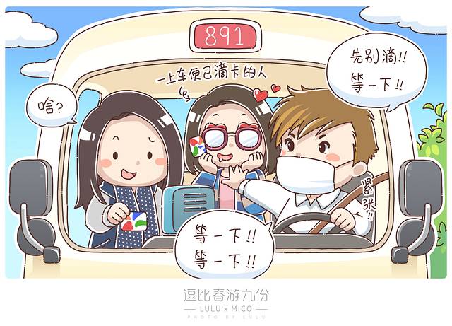 小哥估计今天不停循环跑这条线吧!我们又看到它,原来打算上车就走,结果就在我准备刷悠游卡的时候,小哥连忙举手拒绝,原来他的意思是,他的车不去九份老街那边,如果坐这条线,我们还要转车,所以他告诉我们去车站曾搭另外一部车更为适合~结果我们之好下车又继续去等车了
