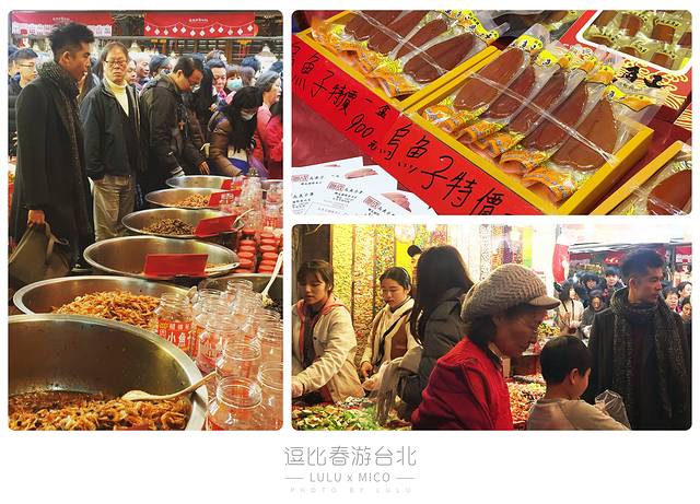 我们随后来到了 台北 年货大街。临近春节,台北这里的年味感觉真的非常浓,街道拥挤得几乎人只能被夹着往前走,而且只能寸步往前挪。虽然广州每年春节各区也有花街,但是和这里相比,好像中国传统的年味在这里更浓。