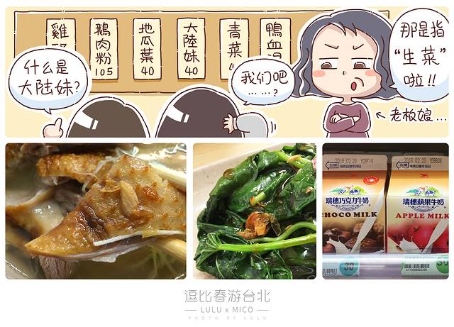 从淡水坐捷运回到东门站,在回民宿的路上,经过一家小食店,因为几天没吃青菜的我太想吃青菜,于是拉着Mico进去就餐!