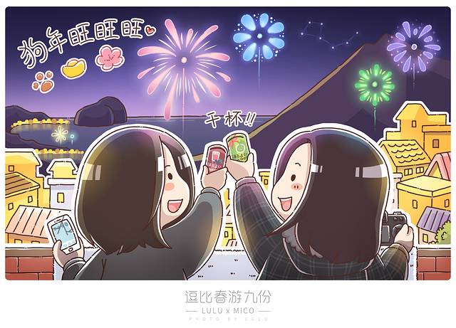 我们回到九份后,在全家和仍在营业的店子里买好了欢度春节的食物后,我们就坐在民宿阳台上看着太阳渐渐下山,等待夜幕降临~九份的黄昏好美