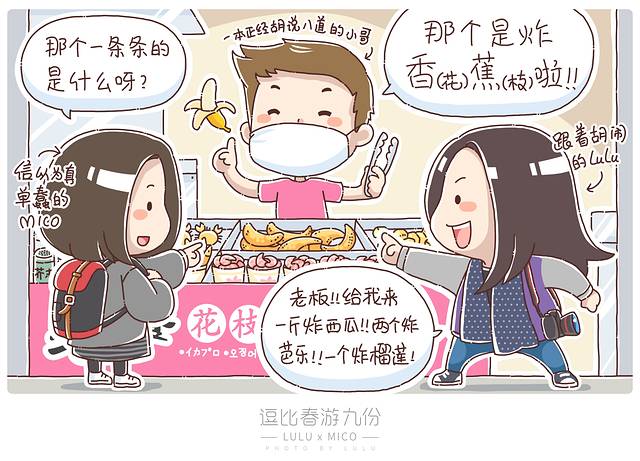 这家店的小哥,真的是超级搞笑~问他面前一条条的炸花枝是什么,他竟然不假思索回答炸香蕉~那好吧~~那老板给我来一份炸榴莲,炸西瓜和炸香蕉吧!!哈哈哈哈,最后小哥也被我们逗乐,还好奇问我们来自哪里~估计是想知道哪个地方盛产逗逼吧!