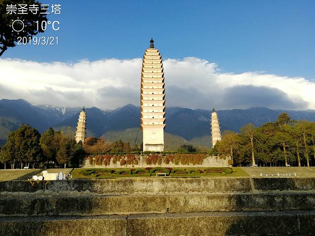 三月二十一日,上午我们去崇圣寺三塔,那个寺院是我们看到的比较气派的寺院之一。在正面,只能看到一个大殿,但是往里面走,层层叠叠,有六七个殿,最后面一个殿还在建,恢宏庞大,让人赞叹不已。能游览这么大的寺院,这么壮观,这趟没有白来,里面的三塔也非常特别,算是大理的标志性建筑。崇圣寺三塔是大理“文献名邦”的象征,是云南古代历史文化的象征,也是中国南方最古老最雄伟的建筑之一。背靠苍山,面临洱海,三塔由一大二小三座佛塔组成,呈鼎立之态,远远望去,卓然挺秀,俊逸不凡,是苍洱胜景之一。下午去了张家花园,小巧玲珑,里面也是极尽豪华,设计巧妙,张家花园是喜好建筑的商人张建春为了复兴白族建筑,潜心研究建筑知识查阅古籍,用自己积累下的财富完成自己建筑梦想的成果。来到张家花园,看的不是古老又源远流长的文物,看的是白族建筑的风雅,看的是白族建筑艺术的复兴。