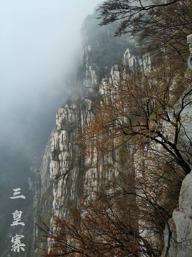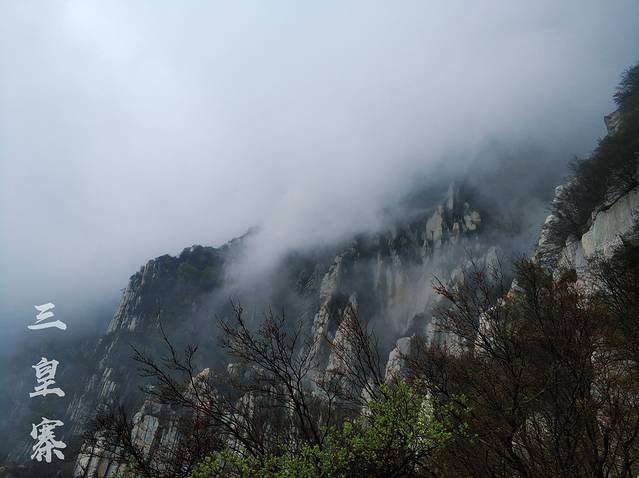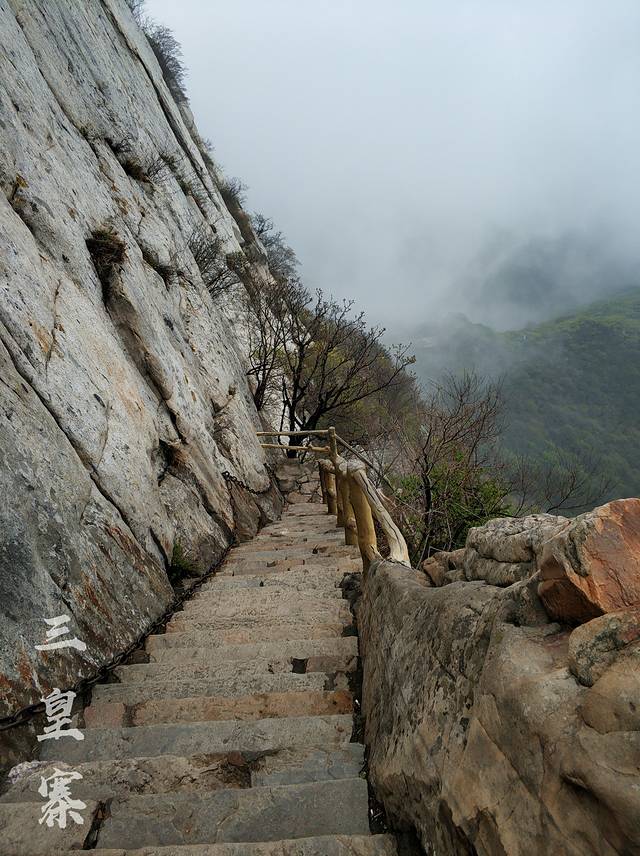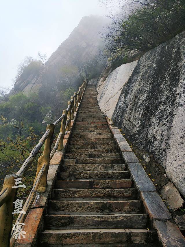 我是从少林寺景区入口进去,坐索道上三皇寨,然后从三皇寨出口出去的。可惜是阴天,雾特别大,美丽景色全都被藏了起来。