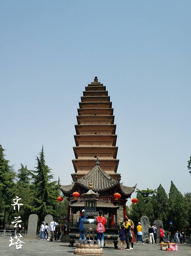 齐云塔本称释迦舍利塔、金方塔、白马寺塔。始建于东汉永平年间,距今近两千年。金代重修重修后的齐云塔距今已有八百多年的历史。塔高三十五米,共十三层。塔院座北面南,占地面积四十余亩。齐云塔在洛阳白马寺山门外东南约200米处,是洛阳一带地面现存最早的古建筑,也是中原地区为数不多的金代建筑遗存之一。塔的造型具有唐、宋时期密檐楼阁式塔的特点。