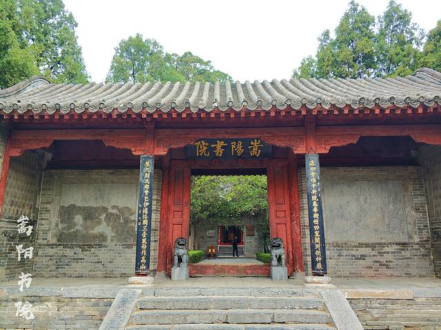 嵩阳书院是中国古代著名的高等学府,中国古代四大书院之一,位于河南省郑州市登封市嵩山南麓。嵩阳书院建制古朴雅致,嵩阳书院基本保持了清代建筑布局,南北长128米,东西宽78米,占地面积9984平方米。中轴建筑共分五进院落,廊庑俱全。由南向北,依次为大门,先圣殿,讲堂,道统祠和藏书楼,中轴线两侧配房相连,共有古建筑108间,多为硬山滚脊灰筒瓦房,古朴大方,雅致不俗,与中原地区众多的红墙绿瓦,雕梁画栋的寺庙建筑截然不同,具有浓厚的地方建筑特色。