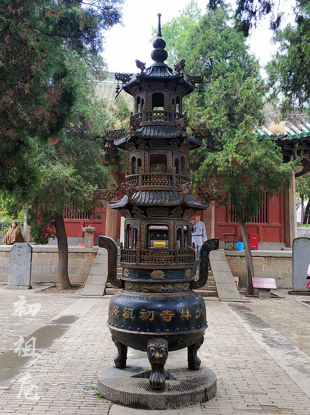 初祖庵,始建于公元1125年,位于少林寺西北约一公里,五乳峰下的小山丘上,是宋代人为纪念初祖达摩面壁而修建的一座庵院,又称“面壁庵”。三面临涧,古木掩映,为山中胜境;伫立院中,可仰望五乳峰顶达摩洞及达摩大型雕像。