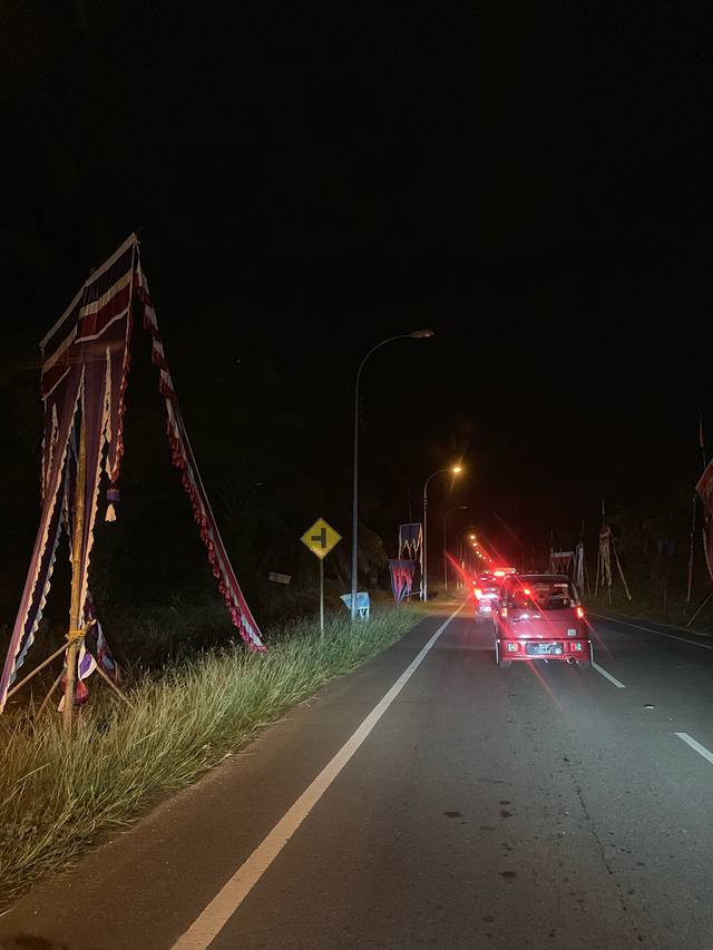 马上百度了一下彩船节👇路边全部是这节日的装饰👇我问到为什么最后一天还那么多车进去,不应该出去才对么。答道:这边有个音乐节,请来的是马来西亚比较出名的艺术家过来表演,开放式免费,都来看最后一天的表演。