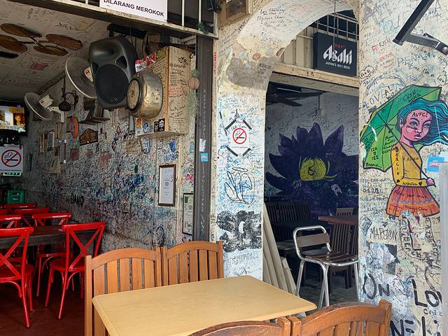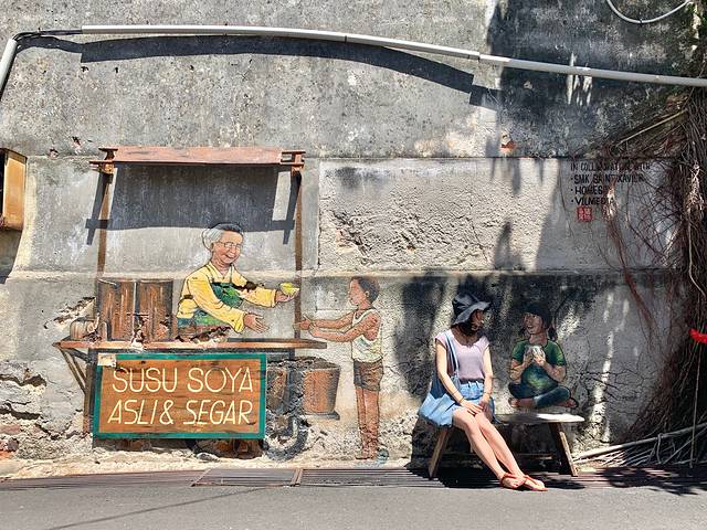 怀旧的南洋建筑,充足的阳光,悠闲的时光,干净的街道,以及每个当地人的微笑和善良,无不让人驻足看看听听走走。今天到了住处出去找吃的路上,时不时来个惊喜,一会看到了爱情巷(并没刻意去找,只是之前在网上看到过,很多欧美背包客聚集地),一会看到很多壁画中的一些,就那样被艺术家们画在街道上,房子上(明天早起拍照再分享,这些壁画是我把目的地从马六甲改为槟城的主要原因)