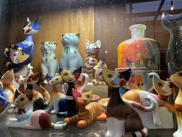 每个店主都那么有个性,随手拍的图五到图十(店里一小部分),都不出售,是店主的收藏品[捂脸][捂脸]朋友喜欢图十第三个黄色的猫,一看没有售价,问了才说是店主收藏,不出售。