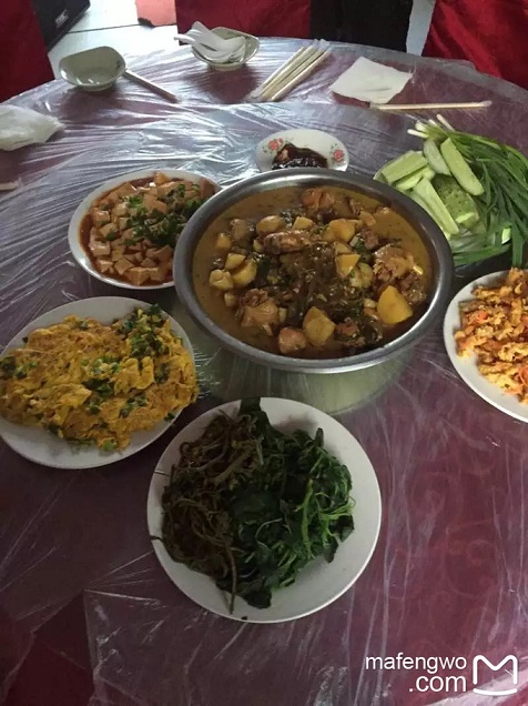 大骨鸡+农家菜,真的跟你平时饭店吃的不一样,烤羊的场面怕各位驴友接受不了的,可自行百度