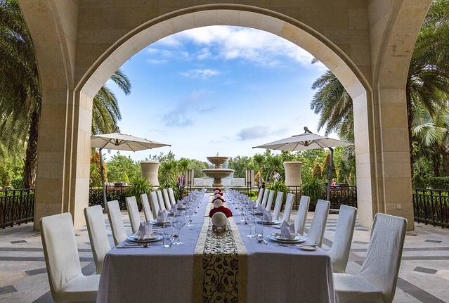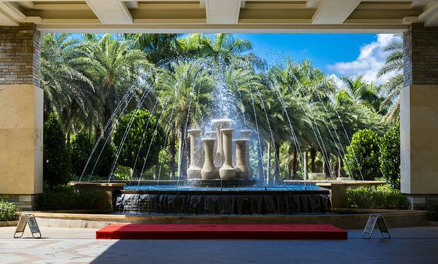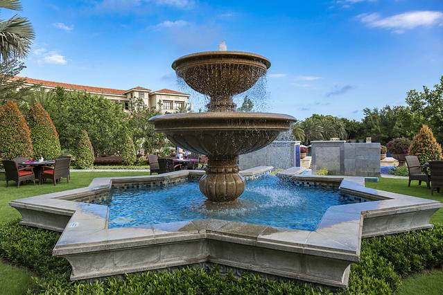 餐厅的环境确实是酒店几个餐厅中最赞的一个,门口一个8角星形状的巨大喷水池,引得很多住客留步打卡,我也忍不住拍了几张,颜值确实很高。