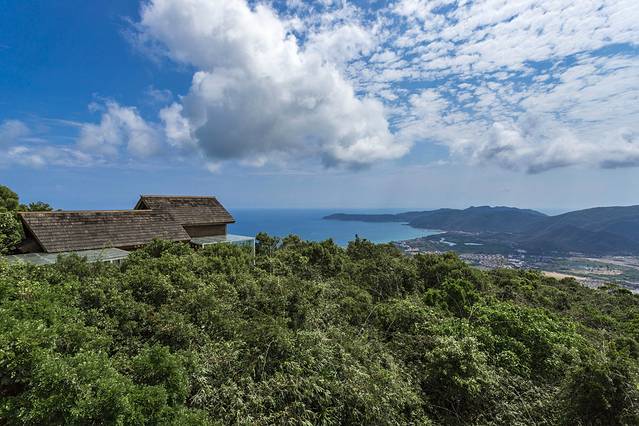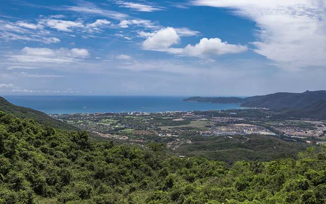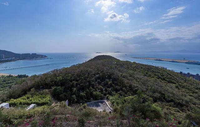 登高望远,有“天下第一海湾”之称的亚龙湾尽收眼底,从高处看过去的视觉效果与走到海边又不一样,海天一色的美景让人看得陶醉。