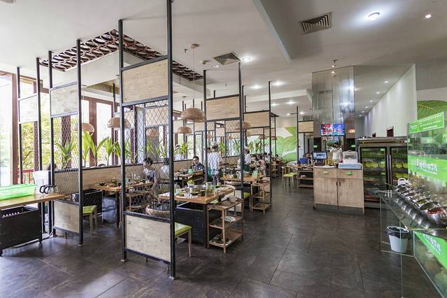 餐厅虽然位于酒店侧楼,但是环境却一点都没有将就,巨大的室内空间让人进来的感觉就很舒畅,清新的装修风格让女票直呼喜欢;事后证明还好我们来得早,到了饭点店内便是座无虚席,我们下午还急着坐飞机,要是来晚了就只能打包带飞机上吃啦,哈哈!
