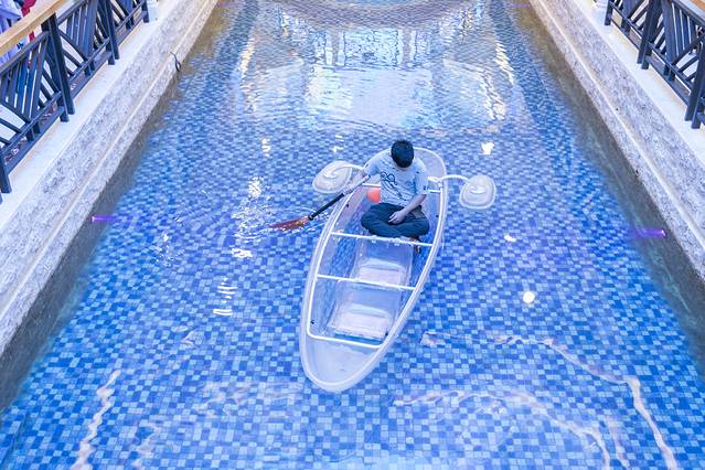 地下商城面积很大,出口遍布市区各个地方,最中央的位置是一条小人工河,可以划船也可以在旁边小店休息。