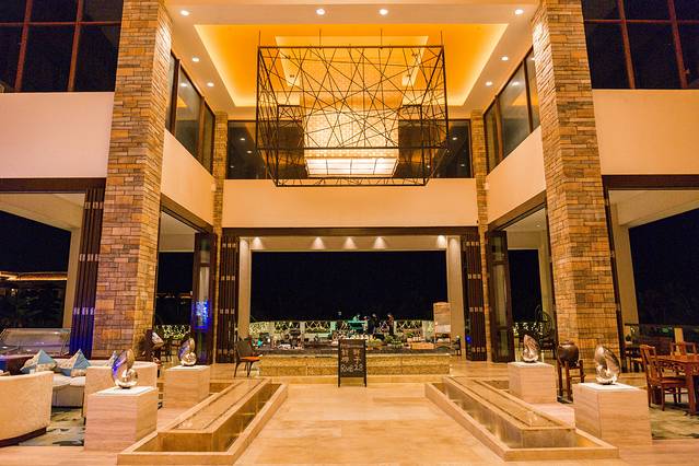 白天忘了拍照,补发一张晚上的大堂照片,不愧是老牌的五星级度假酒店,优秀的服务从你到大门这一刻已经开始体现;进大堂后的第一时间就有人送上一杯暖茶,瞬间便感受到了三亚另类的温暖