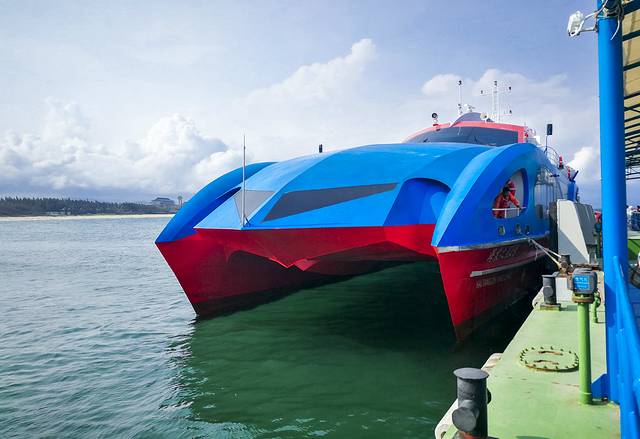 前往蜈支洲岛乘坐的就是这种酷炫大船,外观好看且非常平稳,海棠湾的气候很好,常年无风,所有坐着一点晃动都没有。中间大概有二十几分钟的路程,可以靠窗欣赏三亚海湾景色