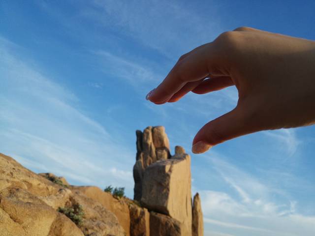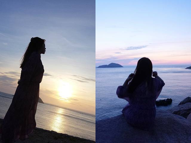 看日出的最佳地点就是佛手石,在小岛的北侧,也就是《欢乐颂2》里关关和谢童看日出的同款地。借位来一张,是不是很有趣呢?