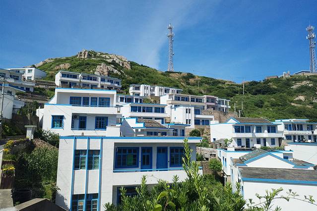 沿途的民居全部被涂刷成了白墙蓝顶,错落有致,俨然自成一到风景线。行走在这样一个蓝白相间的小渔村,确实能感受到那么些来自爱琴海的浪漫。