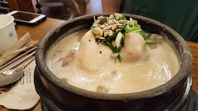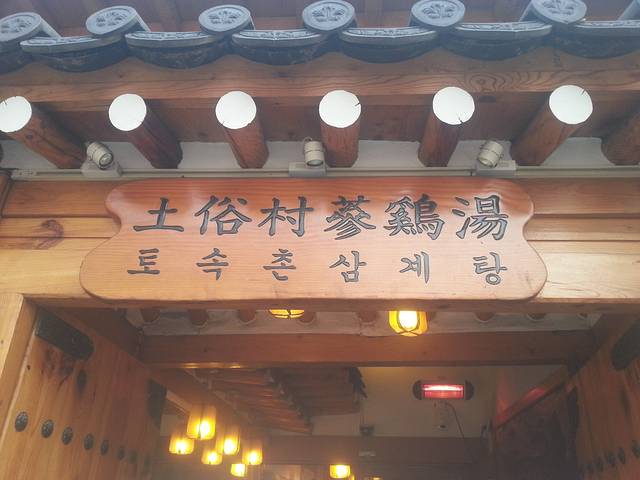 晚餐:土俗村参鸡汤,离景福宫很近,乌鸡汤人均200元一份,料足,两个女生共享一份甚至都绰绰有余。配有的米饭团里有一整颗人参。来首尔必试乌鸡汤啦。(钟路区紫霞门路5街5号)