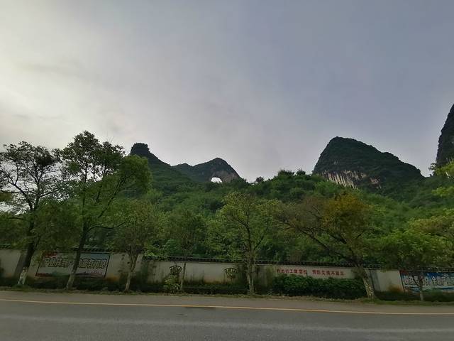 月亮山是阳朔境内的奇景,它在高田乡凤楼村边,高达380多米。因为山顶是有一个贯穿的大洞,好像一轮皓月,高而明亮,所以人们叫它明月峰,俗称月亮山。