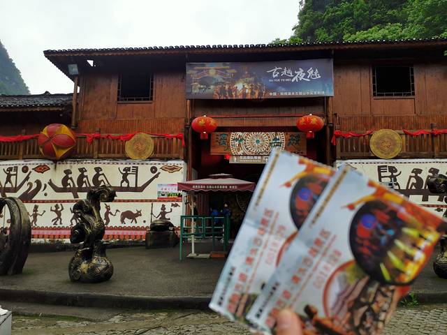 坐落于世界闻名—“十里画廊”景区的大型山水实景演出-《漓水·古越》,是以展示广西少数民族民俗风情为主题的大型民族表演,它集漓江山水、广西少数民族文化及现代艺术创作,选用 “真山真水”做为实景舞台。 展现出了少数民族的 “铜锣文化”“绣球文化” “山歌文化”等多种文化的表演。