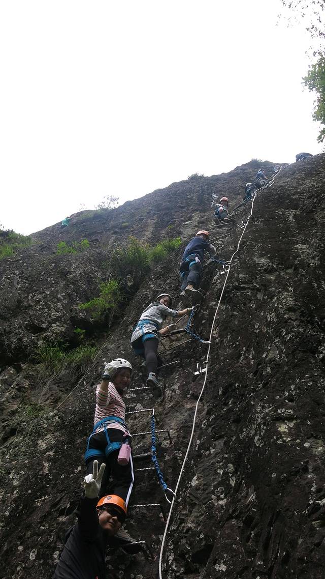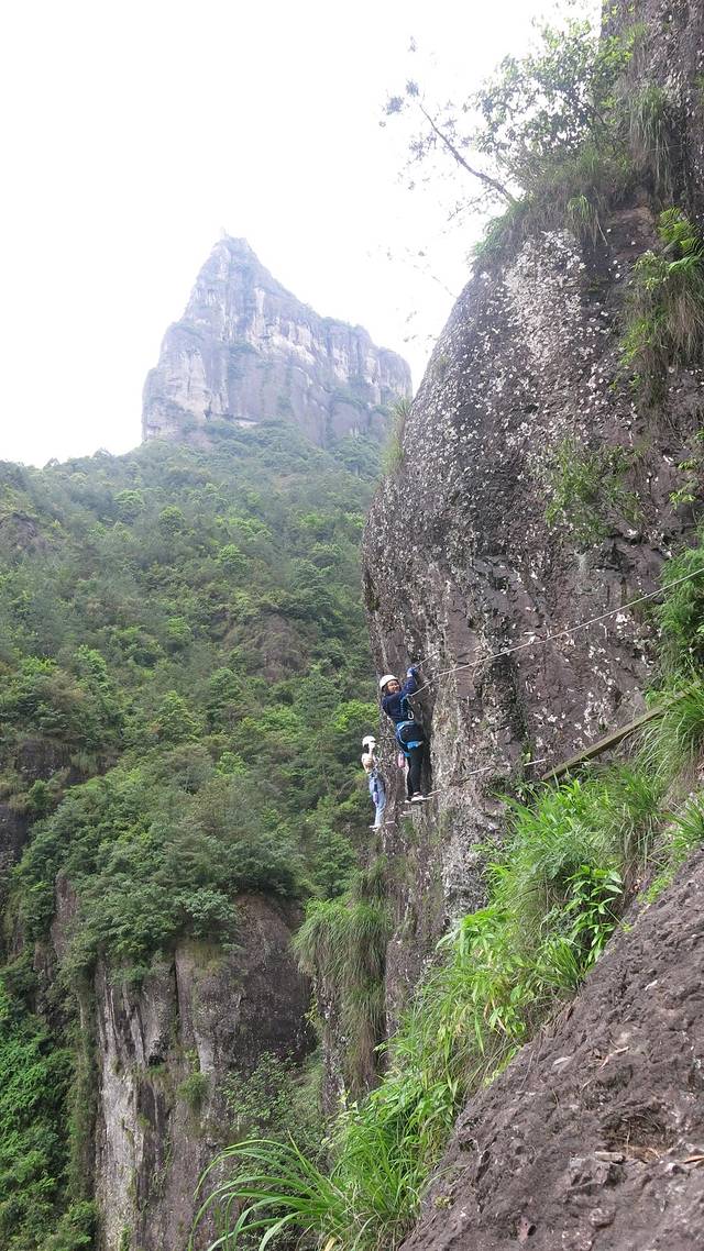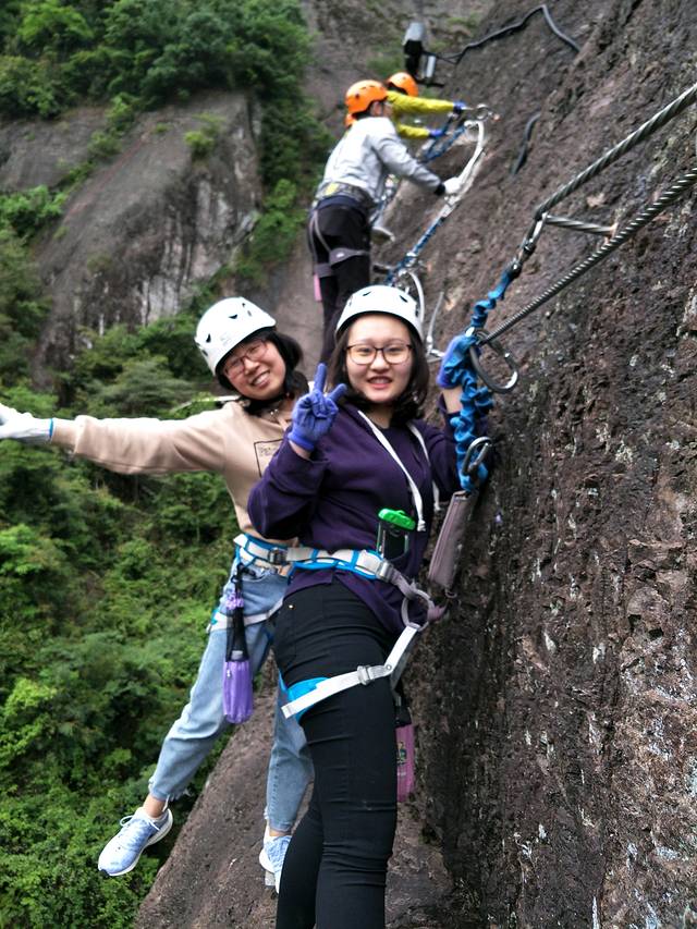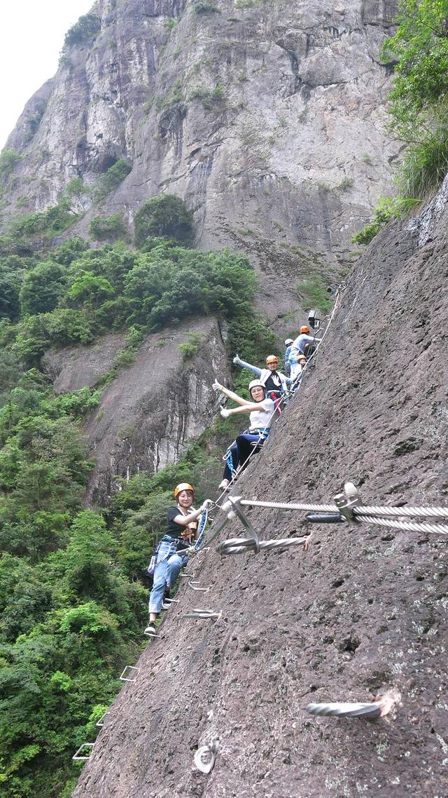 教练说这是零级别的攀岩,而且爬行过程中会有双层保护,还是很安全的。