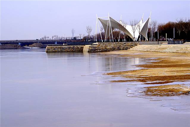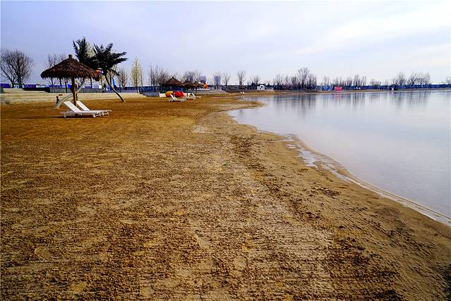 在曹妃甸生态湿地看得最多的是滩涂、芦苇荡、湖泊和池塘,还有那上下翻飞的水鸟。乍一看到蜿蜒的沙滩海岸线,恍若到了北戴河、大连的老虎滩,让人有着难以置信的疑惑,这就是曹妃甸新修建的渤海湾沙滩浴场,虽说还没开启休闲避暑的旺季,但这里已经有游人频频光顾,一探究竟,先睹为快。