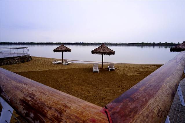 这是个借助濒临渤海湾内湖的优势而兴建的浴场,海岸线全长6.5公里,分别有拍照打卡区、露营区、海上活动项目区等。沿海岸线一路望去,水中绿岛、沙滩排球、左岸春天、鲸鱼岛、浪漫草坪、巴黎时光、香榭大道、冥想空间,林林总总一大堆听说过、没听说过的景点星罗棋布,单看名称就已经让人心驰神往。