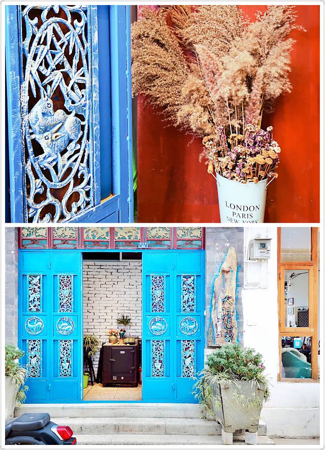 ”蒂芙尼蓝“的门头停放着一辆很炫酷的摩托车,原来这家客栈老板也是个爱玩机车的人!