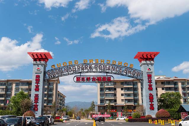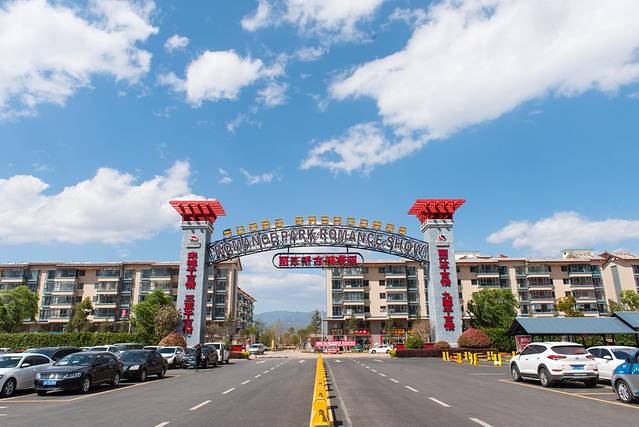 丽江千古情的正门内就是一个规划有序的停车场,自驾的游客可以免费停车。