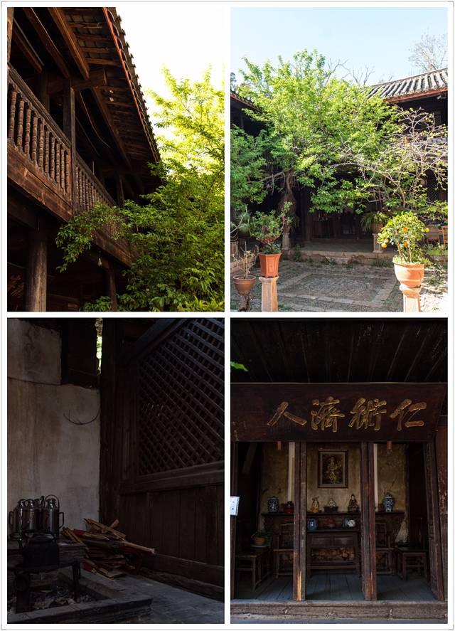 这座古朴的纳西族小院,院子大门两侧贴着东巴文字写成的对联,院内种植了花木,环境优雅古朴。进入正房,可以看到原样保存的马帮头卧室,这里有老床和纳西、藏族风格并存的家具等,古色古香。