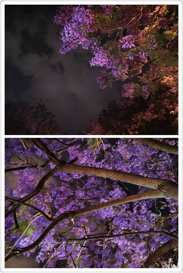夜越深,城市越美。在昆明的教场中路拍下的最美蓝花楹。