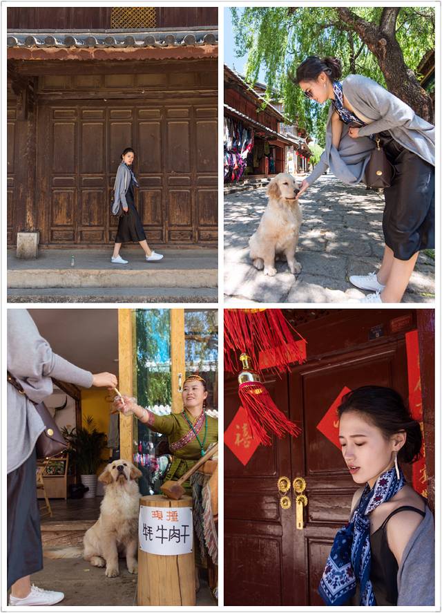 就安静程度而言, 白沙要比束河、大研古镇好得多。我们在白沙古镇里遇见了可爱的金毛,它正是长身体的年纪,看见任何吃的都很馋。在狗狗主人的允许下,给他喂了点儿零食。