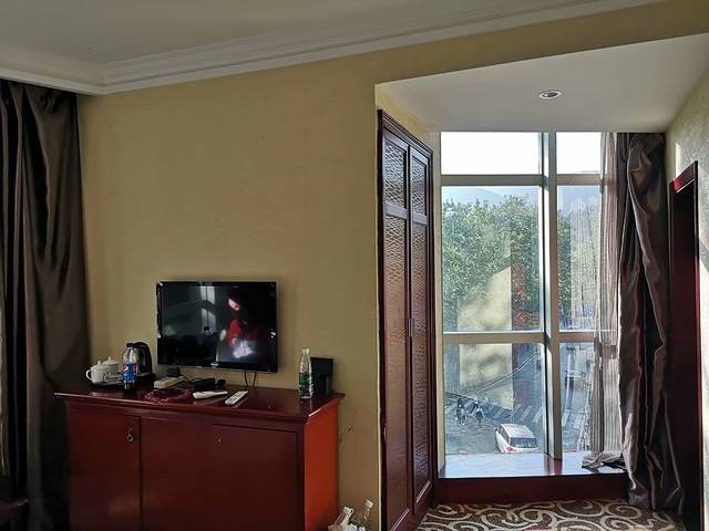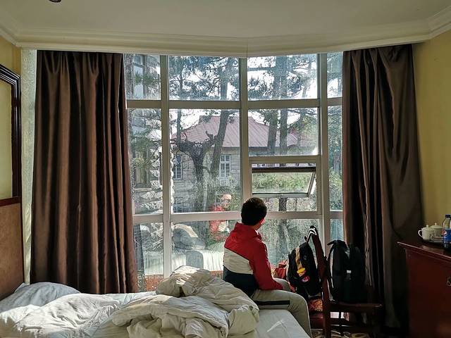 观光车差不多一个小时到牯岭镇,第一件大事就是找旅馆。之前看攻略,发现很多人都说庐山的接待能力很强,所以这次我们大胆不在网上订旅馆,不过浏览了很多旅馆的评价,所以一到牯岭镇各种熟悉的旅馆名字就映入眼帘,观光车停在慧远路口站,一下车就看到锦绣盛世酒店,外面看还行,进去后要求先看房,前台小姑娘连忙推荐了风景好的301,我们也是果断交了两晚的房费,虽然跟网上一样的价格,但我们喜欢 :):):)