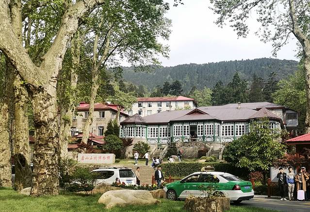 吃完饭出来先去美庐,一路步行,经过了别墅区、电影院、博物馆,小镇周围全是民国时期建筑。从东线博物馆站坐观光车到含鄱口。