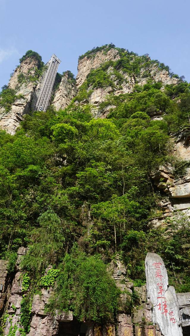 景区内直接乘坐巴士抵达计划行程的起点,袁家界百龙天梯,单程65块,不到5分钟就到达顶端