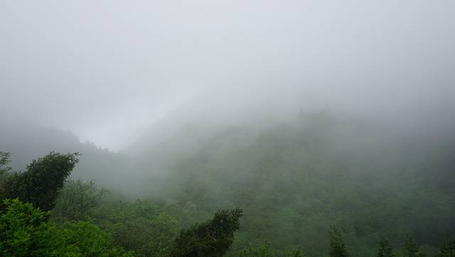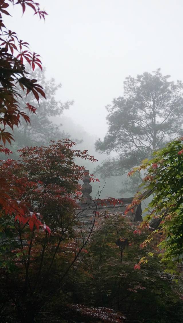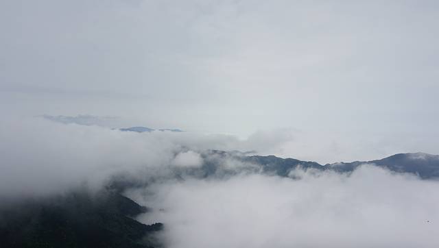 雾气笼罩,即使已经爬的蛮高的了,也看不到什么风景