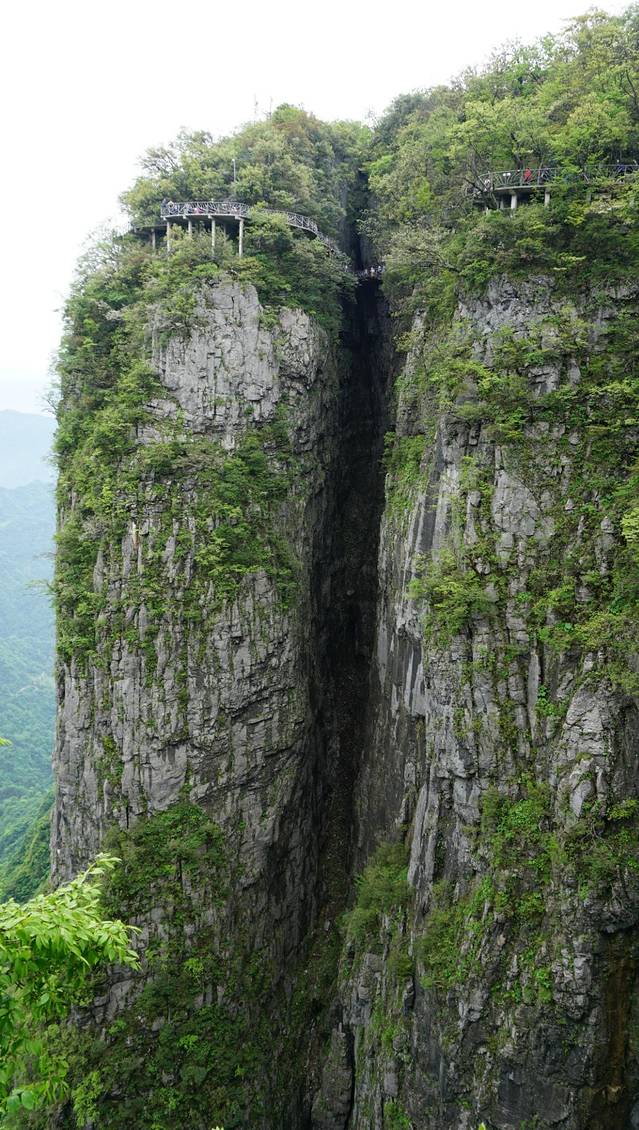 前方的玻璃栈道,天门山东西线各有一小段的玻璃栈道,对楼主这种不恐高的人来说,玻璃栈道,洒洒水啦。感觉看恐高人的反应,比看玻璃栈道更有意思。。。