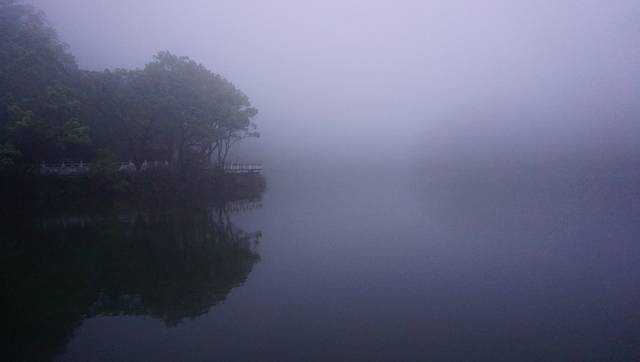 雾气笼罩着湖面,偶尔会听到有人唱歌或者喊山的声音,感觉蛮cool的~~~