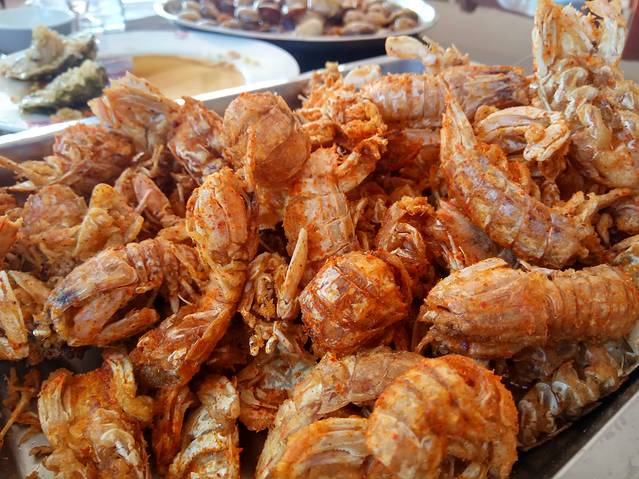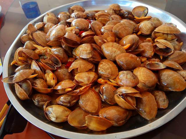市场后面就是卖海鲜的地方了,各种海产品,得会选会吃,二楼就是海鲜加工的小店,也是往年开年会一直去吃的地方,品味很正宗。
