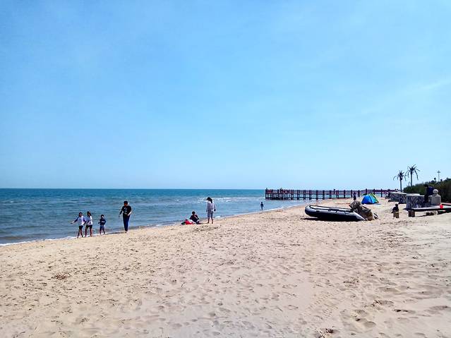 五一的时节海水还是有点凉,不过好多小朋友都踩着水。