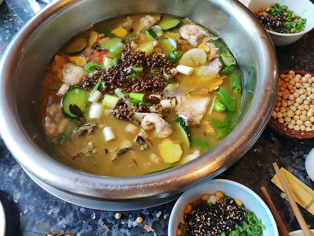 中午去雅安吃的贡椒鱼。地址在高铁站旁边一个小巷子里,味道还不错,但是也不至于上菜要等四十分钟吧,还有,蛋炒饭为什么那么大一份!吃不完的诶。