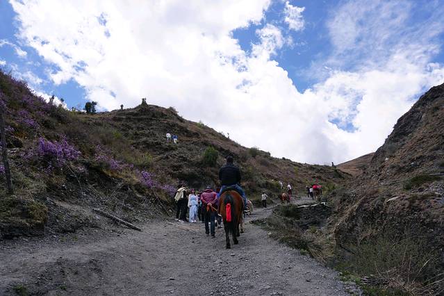 从雅安过去,先高速到康定。五点起来的。