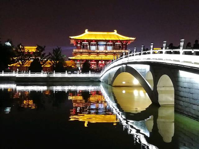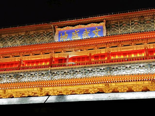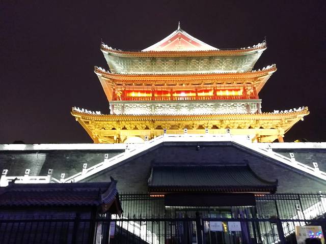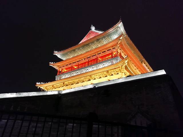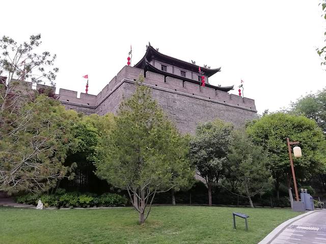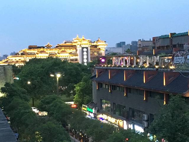 在计划的行程中,西安历史博物馆由于没有提前定票,一路堵车好不容易去到了,空手而归,只能在门口远望感受一下,饿了一天在博物馆对面一家面馆吃到了最好吃的裤带面和这么多年多地吃的臭豆腐最回味的一次,也算没白来一次博物馆。城墙离博物馆不远,找了一个商场放车,一路悠哉的乱走,也走到了城墙底下,走着走着,上了墙,那古城的夜景印入眼帘,历史与现代的融合,美不胜收。