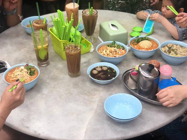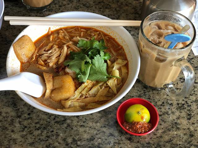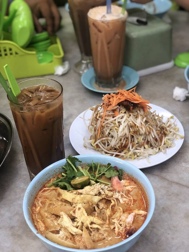 舜虎带我们去的这家叻沙真的好东南亚!!虾酱、青柠、酸酸辣辣,简直就是上脑美味!刚刚在茶室吃了早餐?不存在的!来呀!上菜啊!拉茶、奶茶、三色咖啡、咸鱼豆芽、叻沙、星洲炒米全部冲我来!