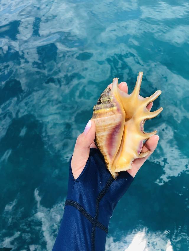 在浮潜的时候瞎捞到的海螺,拍完照就放回去了
