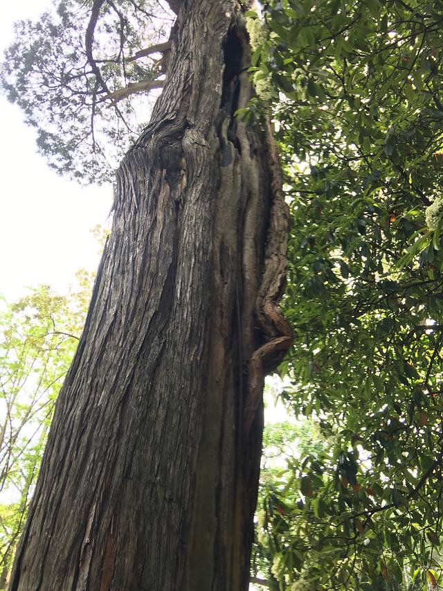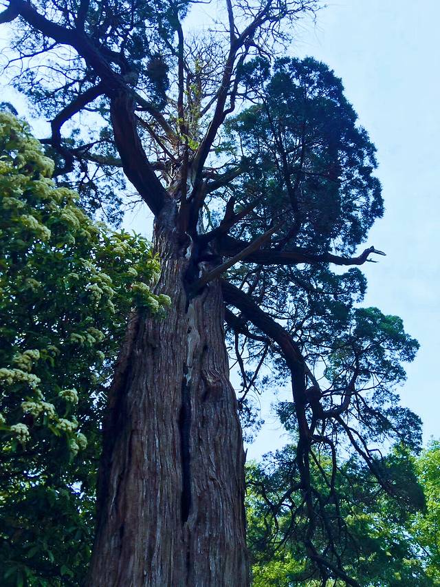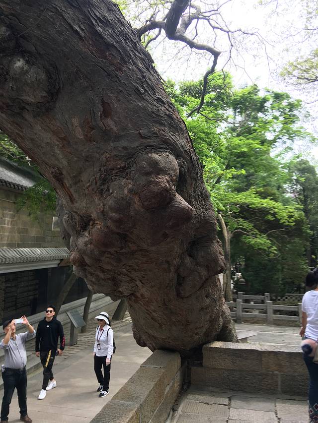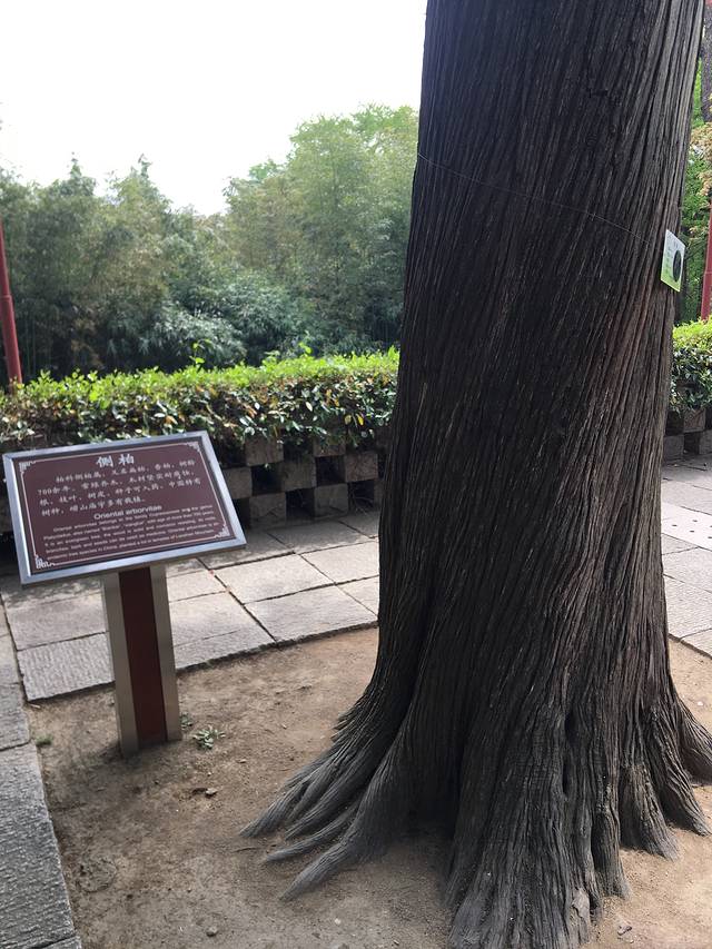 据介绍是一颗桧柏树,由汉代的才子张廉夫亲手栽植。树上寄生了一颗凌霄树,像龙一样缠在树干上,这一奇景被称为“汉柏凌霄”。在这棵树的北面的第一个树杈上还有一颗小树,经鉴定是一颗刺楸。这一奇迹被称为“三树一体”。