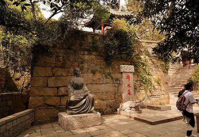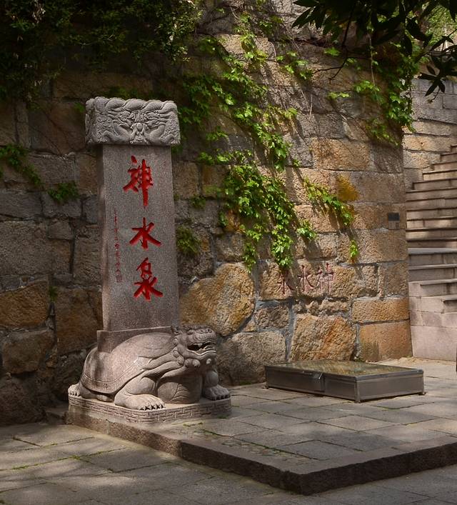 三官殿外的院中有一泉水叫神水泉,泉水清冽甘美,大旱不涸,大涝不溢,是崂山第一名泉。