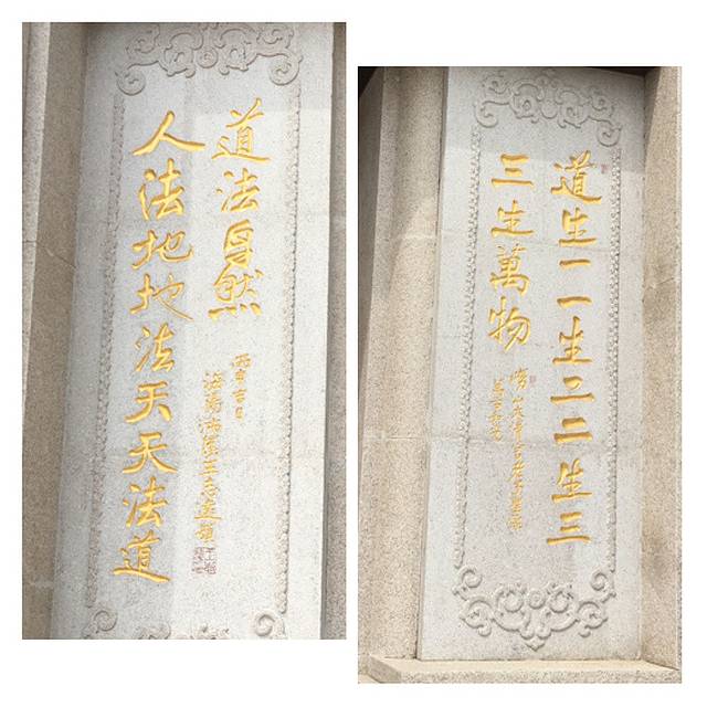 抬头仰望,老子一手指天,一手指地,意为“开天辟地,唯道独尊”。